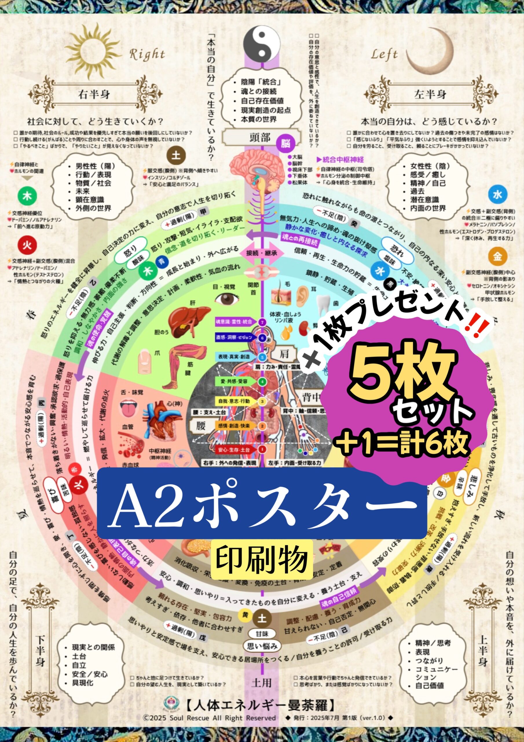 人体エネルギー曼荼羅《A2ポスター×5枚セット(印刷物) 》【感謝で➕1枚プレゼント❗️=合計6枚セット(1枚当たり@1,250円)】