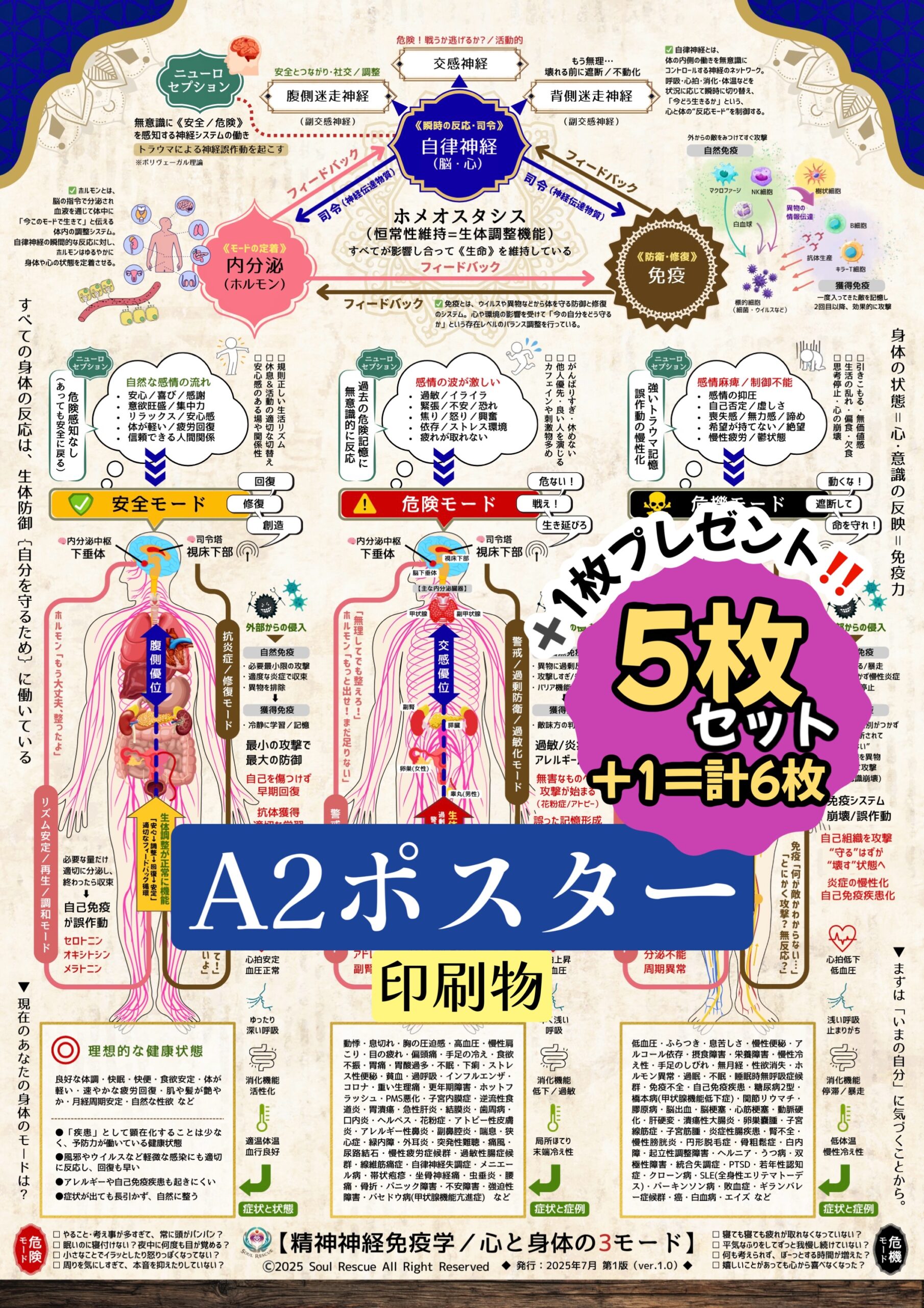 心と身体の3モード《A2ポスター×5枚セット(印刷物) 》【感謝で➕1枚プレゼント❗️=合計6枚セット(1枚当たり@1,250円)】