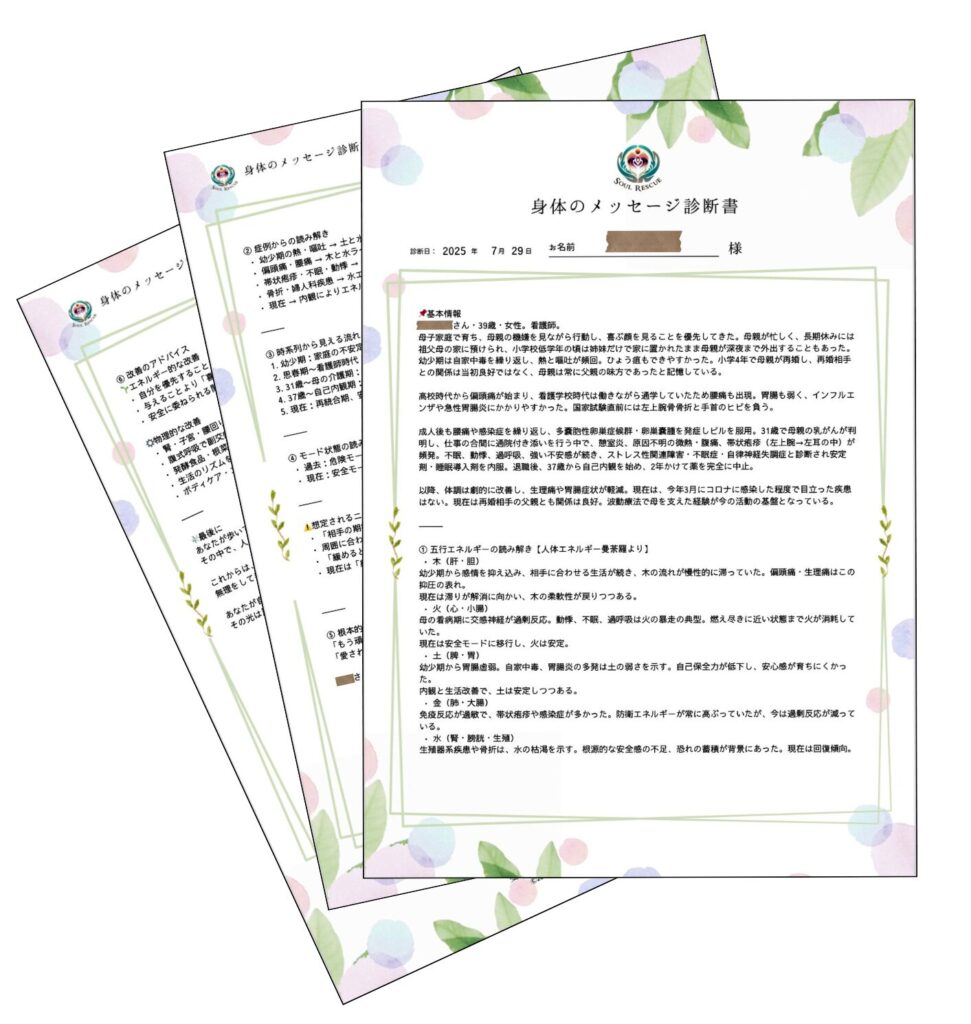 五行エネルギーの滞りや自律神経&免疫の状態、あなたの本質的なテーマなどを診断いたします。